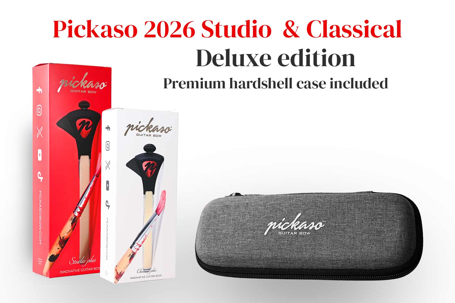 - Look for the Pickaso pick logo on the bow handle — just as shown here.